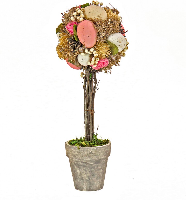 National Tree Company 14 in. Easter Single Ball Topiary Potted Plant Decorated with Pastel Eggs