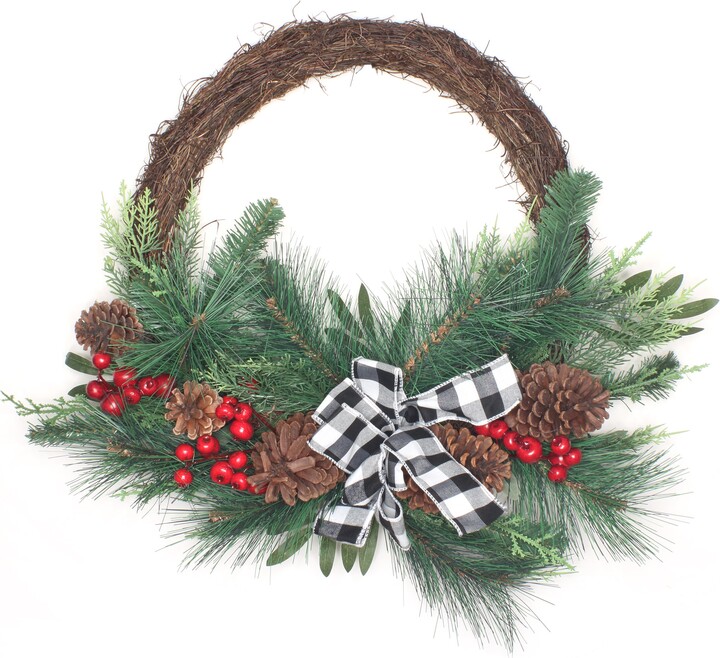 National Tree Company 24 in. Mixed Pine and Berries Decorated Wreath