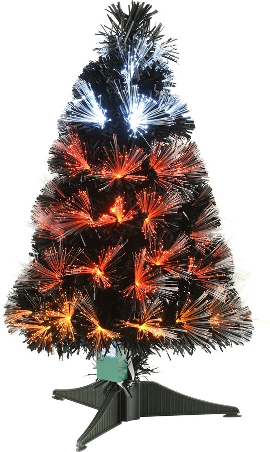National Tree Company 3 ft. Halloween Pre Lit Black Tree Decoration with Fiber Optic, Candy Corn Colored Lights, Plug-In