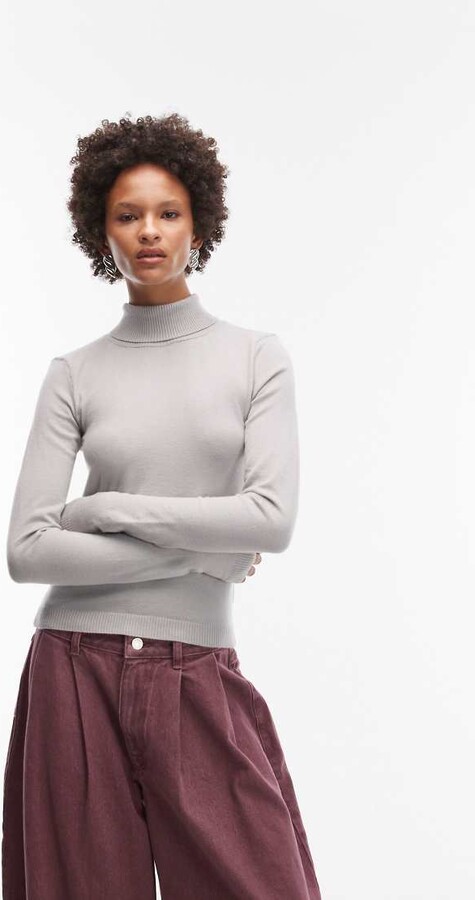 ASOS DESIGN fine knit turtle neck sweater in gray