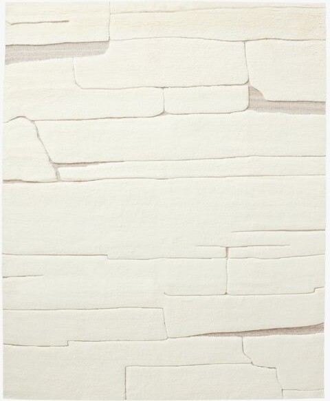 Copley Hand-Knotted Warm White with Taupe New Zealand Wool Area Rug 5'x8'