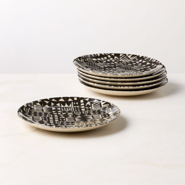 Corvo White and Black Patterned Salad Plates Set of 6 by Ackerman