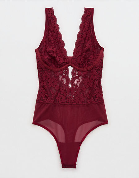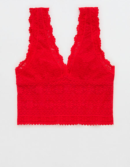 aerie Show Off Flocked Vintage Lace Plunge Bralette