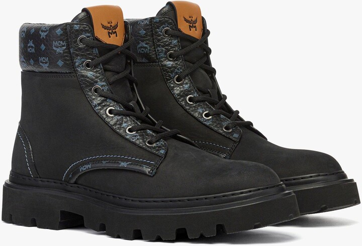 MCM Ankle Boots in Nubuck and Monogram Print Leather