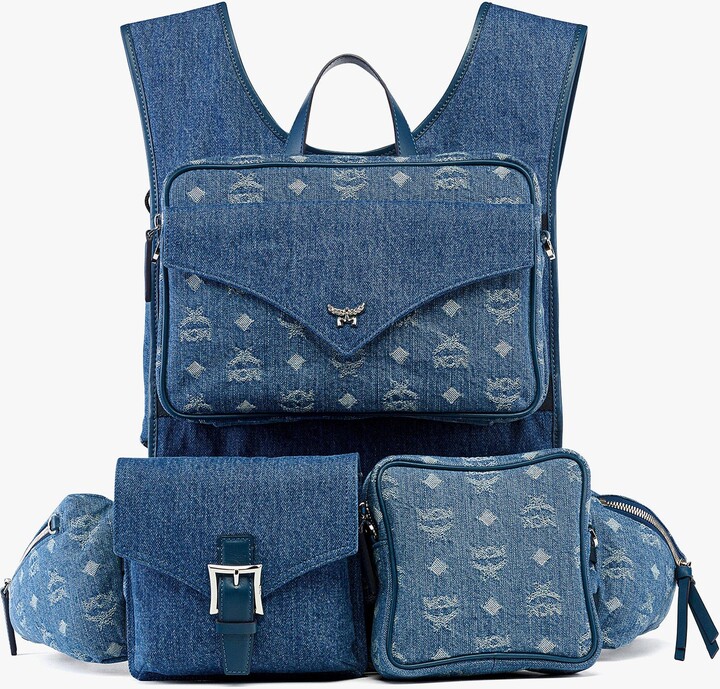MCM Aren Multi-Backpack in Monogram Denim Jacquard