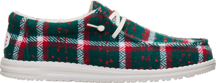 Hey Dude Men's Wally Confetti Plaid Cozy Shoes, Size 8, Red/Green/Multi