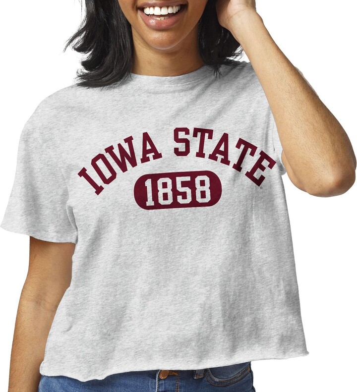 League-Legacy Women's Iowa State Cyclones Grey Clothesline Cotton Cropped T-Shirt, Small, Gray