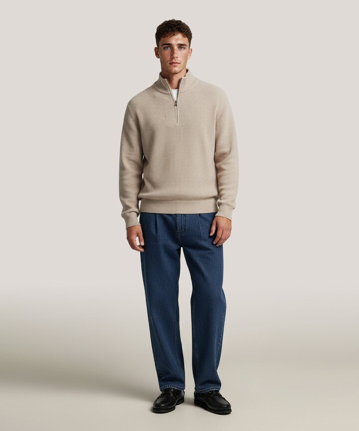 Naadam Cashmino Ribbed Quarter Zip Sweater