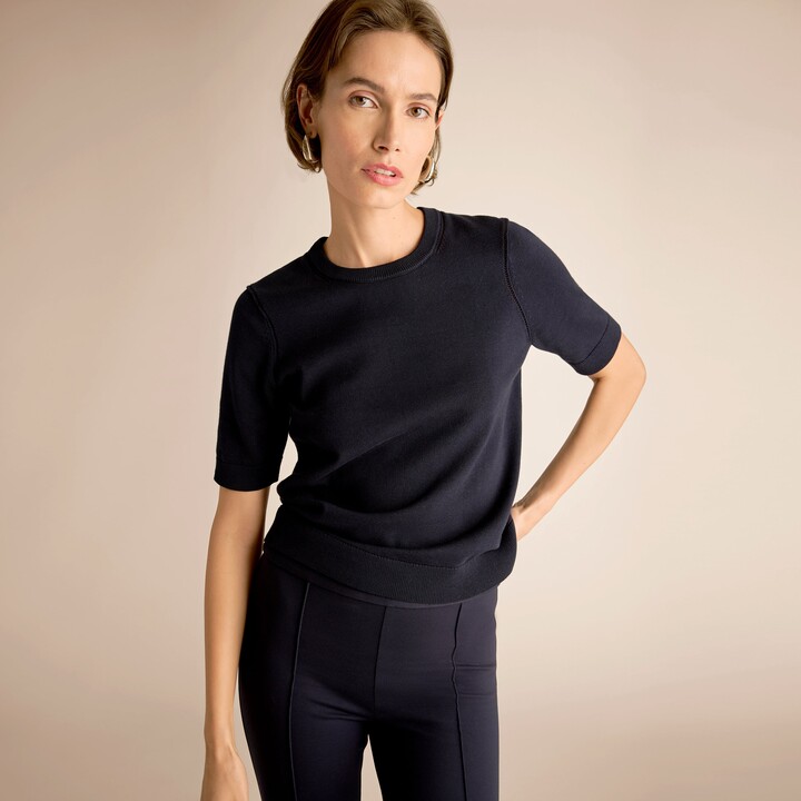 M.M. LaFleur Becca Pointelle Tee - 365 Cotton Silk Knit - Dark Navy