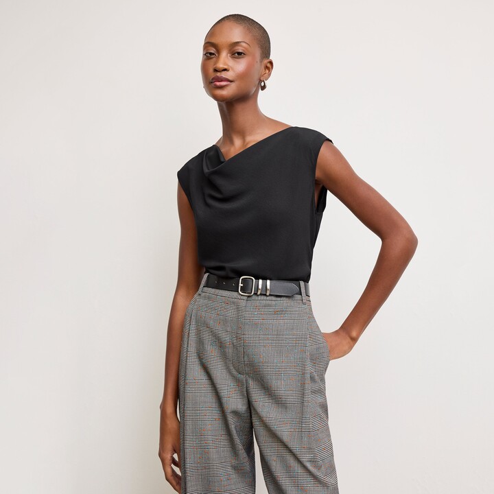 M.M. LaFleur Emmy Drape Top - Printed Everyday Satin - Brushstroke Paisley