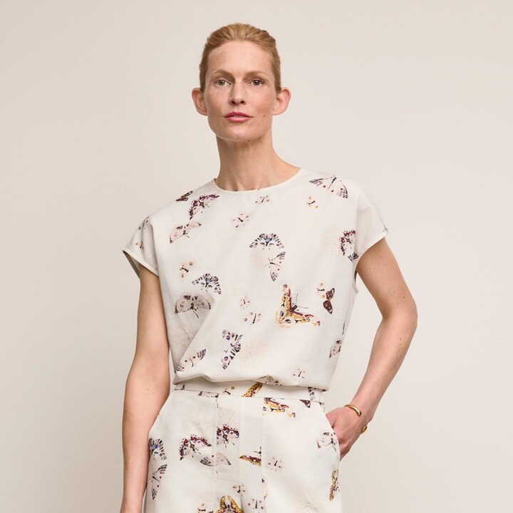 M.M. LaFleur Didion Drape Top - Airy Cotton - Butterfly Print