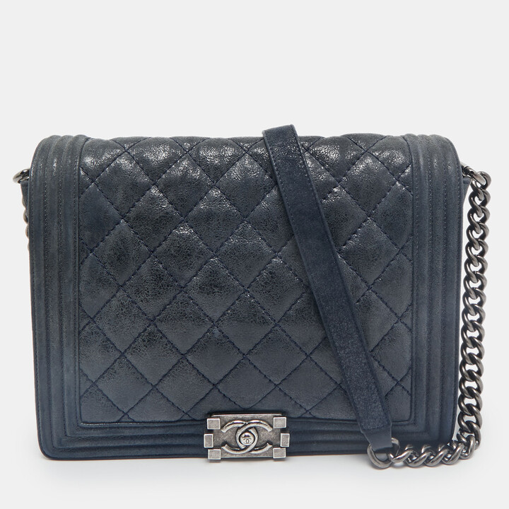 Chanel Navy Blue Quilted Iridescent Leather Boy Flap Bag