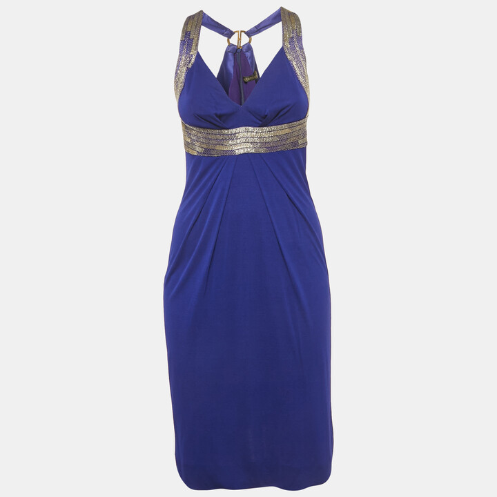 Roberto Cavalli Blue Beaded Jersey Short Dress S