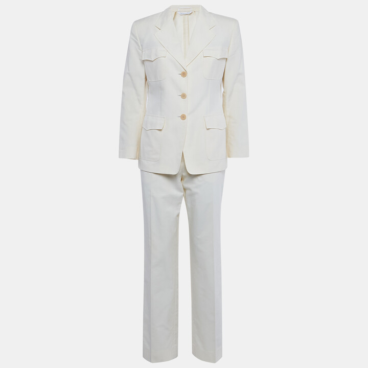 Max Mara Cream Cotton Blazer & Pants Suit S