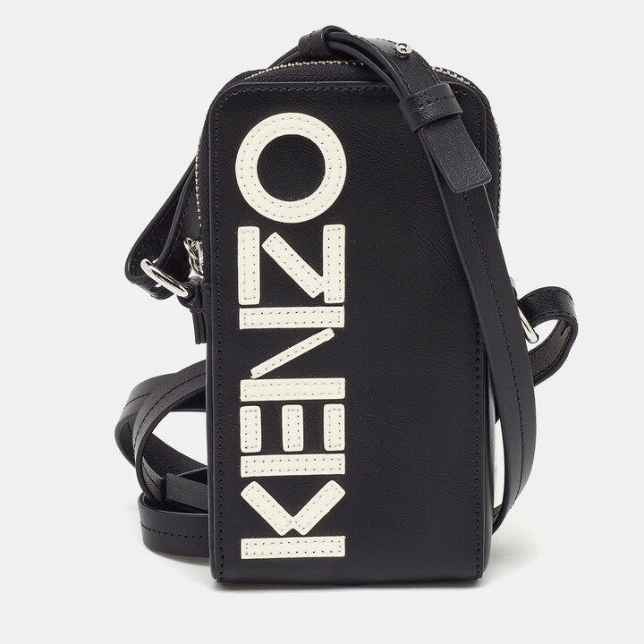 Kenzo Black Leather Phone Card Holder Crossbody Bag