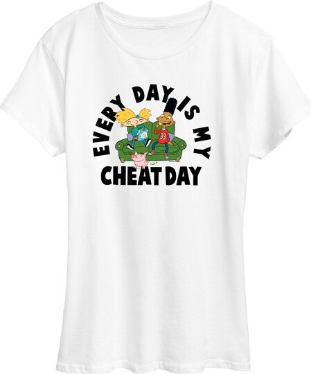 Hey Arnold! Women'sHeyArnold!CheatDayShortSleeveGraphicT-Shirt-White-Large