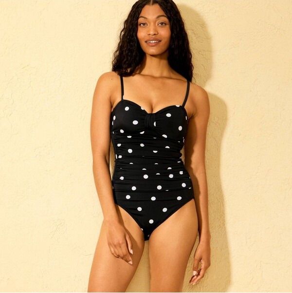 Shade & Shore Women'sPolkaDotsLongTorsoCenterFrontTabScoopNeckMediumCoverageOnePieceSwimsuit-Shade&Shore™BlackXS