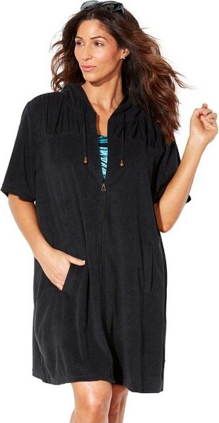 Swimsuits For All SwimsuitsforAllAlanaTerryCoverUpHoodie-34/36,Black(PlusSizesAvailable)