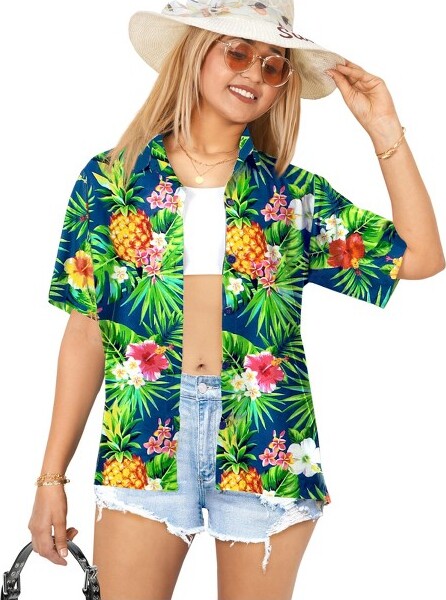 LA LEELA LALEELAButtonDownShirtforWomenFloralSummerBeachTropicalBlousesCoverupShortSleeveVacationShirtsHawaiianesforWomenLPineappleBlue