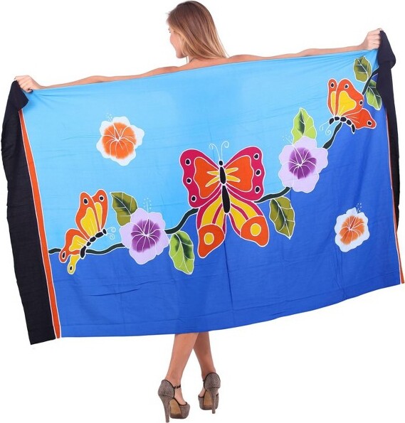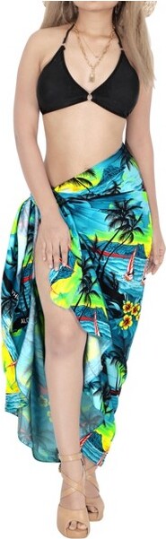 LA LEELA LALEELASwimCoverUpLongWomen'sBeachwearSummerPoolBeachWrapsSkirtSwimwearSarongSheerCoverupsScarfforWomenOneSizeBlueFloral