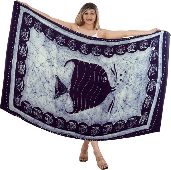 LA LEELA LALEELAWomen'sWrapSarongSwimwearCoverupWrapsOneSizeDenimFish