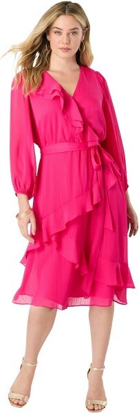 Roamans Roaman'sChiffonWrapDress-16W,HotPink