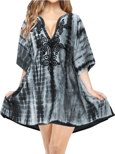 LA LEELA LALEELAWomen'sBeachCoverUpBikiniBathingSuitSummerOneSizeFitsMostBlackTieDye