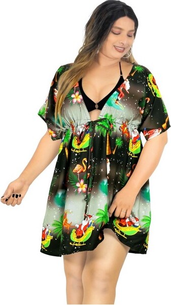 LA LEELA LALEELAWomen'sBeachwearSwimBeachDressCoverUpsforBathingSuitCoverupSwimsuitCoverupforWomenChristmasTreeXL-XXLXmasEbonySantaSurf