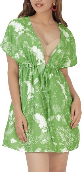 HAPPY BAY HAPPYBAYWomen'sBeachCoverUpSummerLooseSwimwearMiniBathingSuitWrapsHawaiianBeachwearX-Large-XX-LargeGreen,Floral