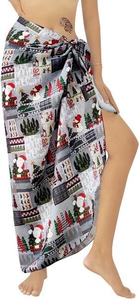 HAPPY BAY HAPPYBAYWomen'sBeachwearBeachSantaBikiniCoverupsWrapSwimwearPareoWrapsChristmasTreeSwimCoverUpSarongforWomenOneSizeGray