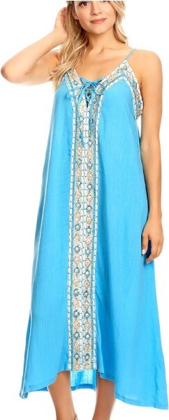Anna-Kaci Swim Anna-KaciSwimWomen'sCasualCaftanBohoLongMaxiSwimsuitSummerCover-Up-Small/Medium,Blue