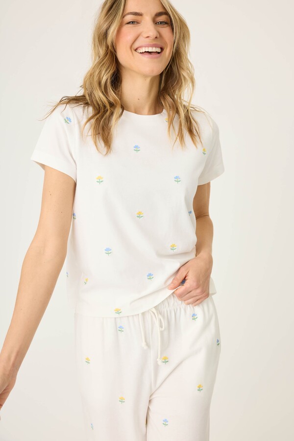 PJ Salvage Super-Soft Cotton Dainty Daisy Embroidered Short Sleeve Top