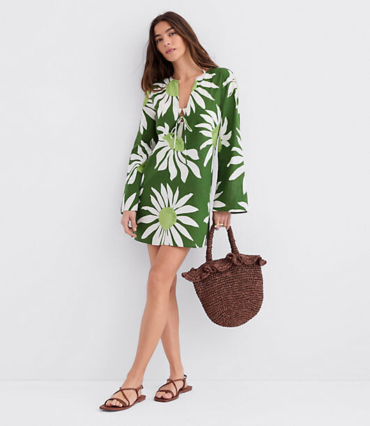 LOFT Beach Floral Linen Cotton Flare Sleeve Mini Dress