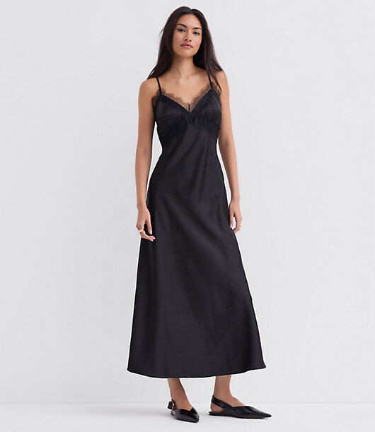 LOFT Petite Lace Trim Satin Midi Slip Dress