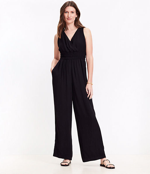 LOFT Smocked Crisscross Back Jumpsuit