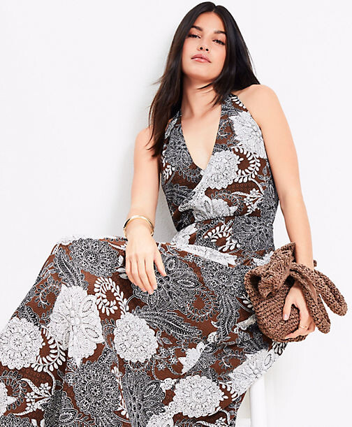 LOFT Petite Floral Halter Maxi Pocket Dress