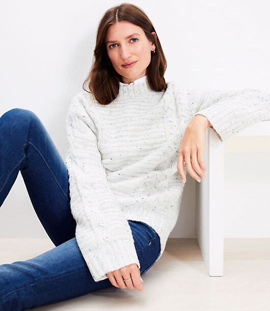 LOFT Flecked Cable Linked Mock Neck Tunic Sweater