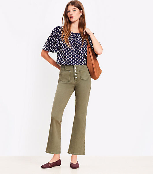 LOFT Patch Pocket High Rise Kick Crop Jeans in Evening Olive