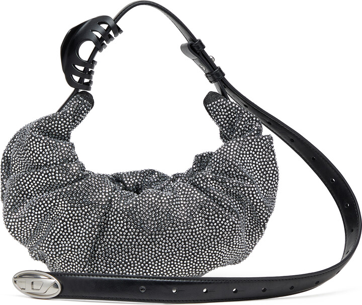 Diesel Grab-D S-Small scrunched hobo bag in crystal denim