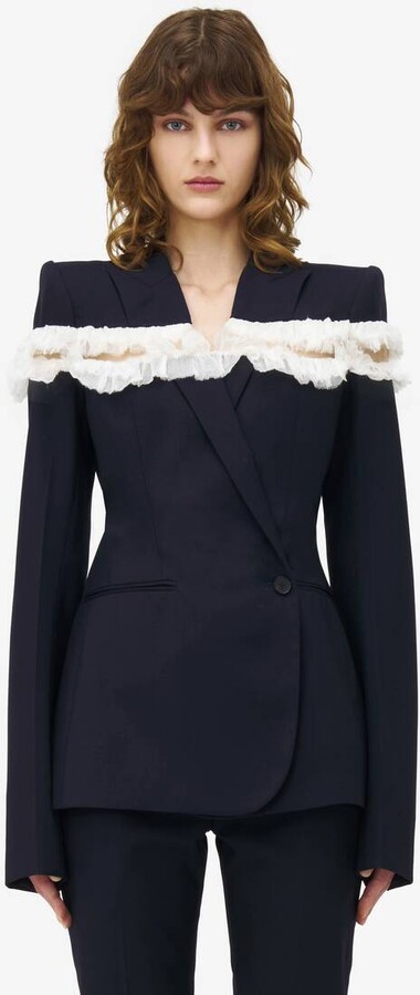 Alexander McQueen Slashed Creponne Detail Single-Breasted Jacket