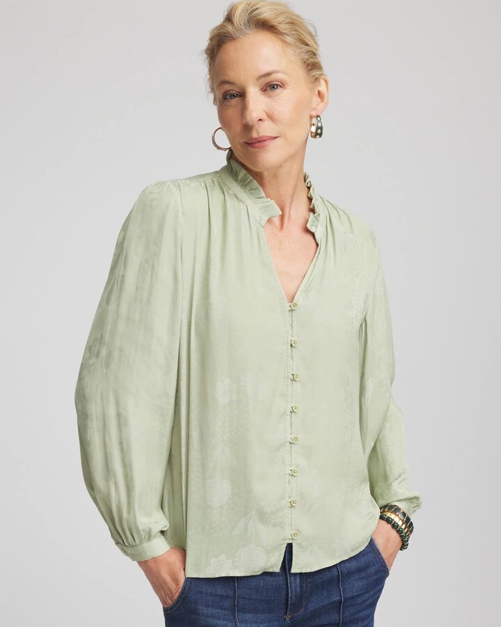 Chico's Jacquard Georgette Peasant Blouse in Sage Meadow