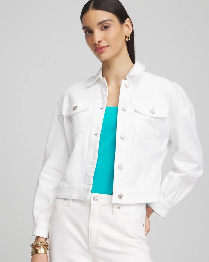Chico's Embroidered Relaxed Denim Jacket in White
