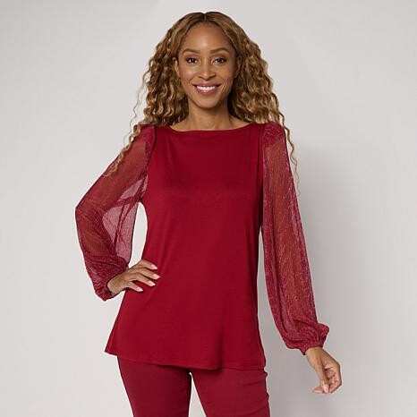 G by Giuliana Knit Top with Tiered Mesh Sleeves - Black - Size X-Small