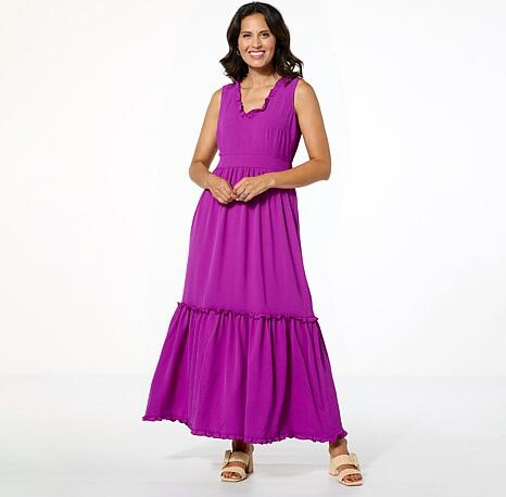 Nina Leonard Textured Wave Tiered Hem Maxi Dress - Purple - Size Large