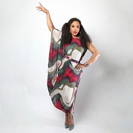 Vivica A. Fox Collection Textured Gauze One-Sleeve Dress - Swirl Print - Size 3X