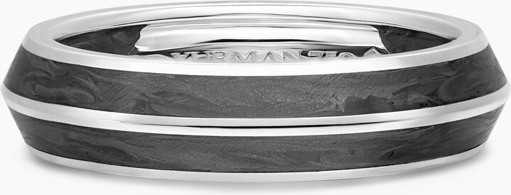 David Yurman Knife Edge Band Ring in 18K White Gold with Forged Carbon | Men's | Size 10