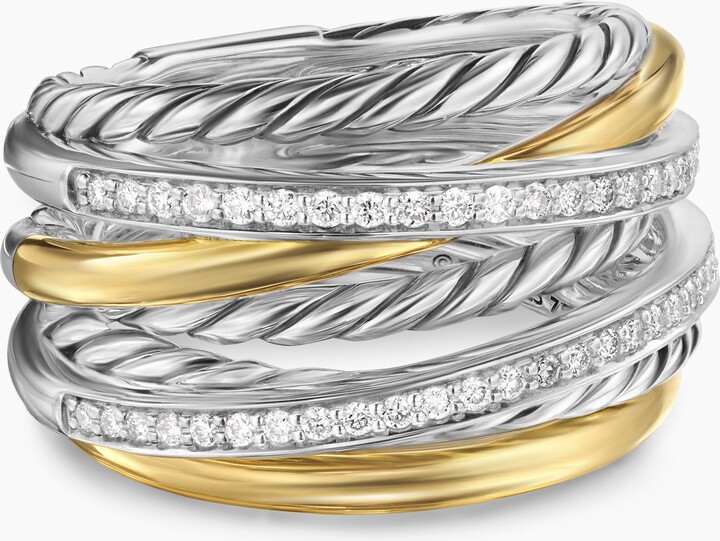 David Yurman Crossover Seven Row Ring in Sterling Silver with 18K Yellow Gold and Diamonds | Women's | Size 7.5