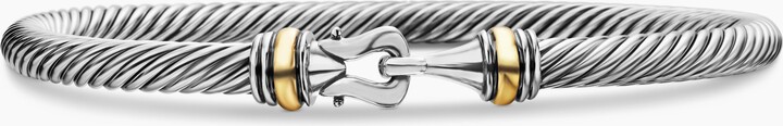 David Yurman Buckle Classic Cable Bracelet in Sterling Silver with 18K Yellow Gold | Women's | Size XL