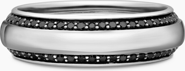 David Yurman Beveled Band Ring in 18K White Gold with Black Diamonds | Men's | Size 10.5