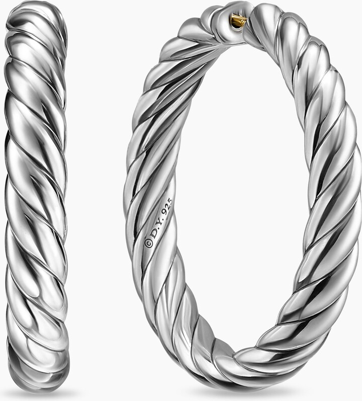 David Yurman Sculpted Cable Hoop Earrings in Sterling Silver | Women's